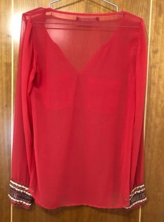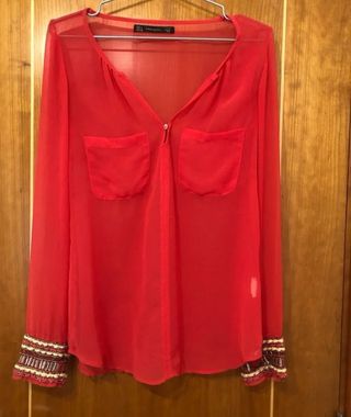 Blusa de gasa de Zara. Sólo la usé un día 2 horas. Precioso color y detalle de prederia en las mangas.