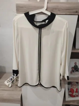 Elegante blusa de Zara en talla única. Su diseño moderno y tejido la hacen ideal para cualquier ocasión. - Corte holgado y favorecedor. - Cuello camisero clásico. - Cierre de botones. - Bajo asimétrico.