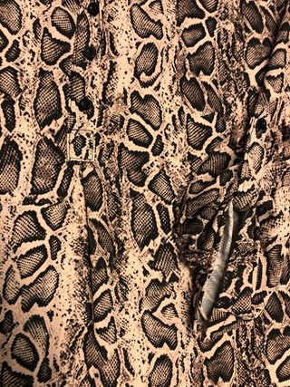 Blusa de mujer con un llamativo estampado de serpiente. Perfecta para añadir un toque salvaje a tu look. - Talla XL. - Diseño con botones. - Cuello camisero.