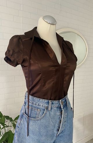 Blusa marrón brillante mujer