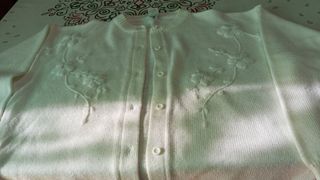 Blusa de manga larga azul celeste con un diseño encantador de lunares bordados blancos. A estrenar, completamente nueva Tela fina de algodón 100% y lunares en poliéster. Puños con botón. Sisas: 35 cm. Largo: 64 cm. Hombros: 49 cm - Color celeste suave. - Lunares blancos texturizados. - Cuello camisero clásico. - Cierre de botones al frente.