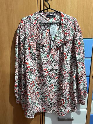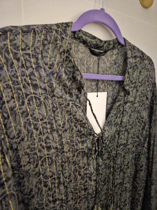 Blusa de Zara con un llamativo estampado. - Diseño con cuello en V y botones. - Mangas largas. - Bajo con plisados.