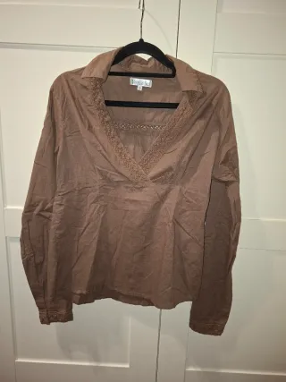 Preciosa blusa de la marca Version Sud en color marrón. Es una prenda elegante y delicada. Diseño de cuello camisero. Presenta detalles de encaje en el escote y en las mangas. Talla M. Mide unos 47cm de ancho y unos 62cm de largo. Envío por WALLAPOP!! *OFERTA 3X2 en artículos señalados. Si compras 3 artículos, te llevas gratis el de menor importe* **En mi perfil encontrarás ROPA y COMPLEMENTOS, PLAYMOBIL, LEGO, STAR WARS, NANCY, BARRIGUITAS y BARBIE** ropa, vetements, clothes, vestiti, roupas, moda, mode, fashion, blusa, blouse, camicetta, camiseta, tshirt, maglietta, camisa, shirt, chemise, camicia, mujer, femme, women