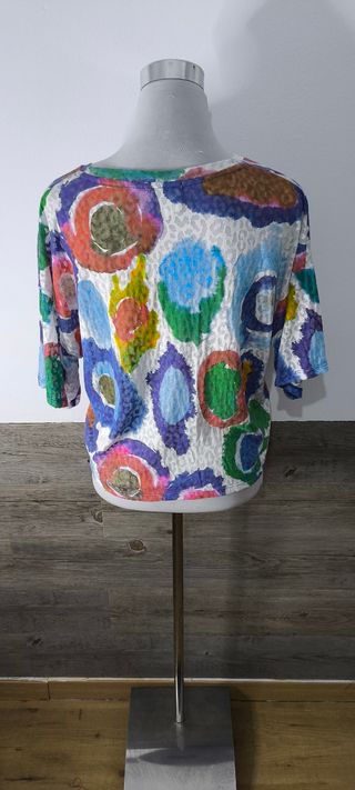 Bonita y cómoda blusa de punto . Sin estrenar . Marca Desigual. Colores agradables, y corte moderno, textura entre algodón, y aterciopelada. Talla más o menos XL , como entre 44-46. Medidas: De hombro a hombro : 67 cm. Circunferencia de pecho: 124 cm. De cintura: unos 114 cm. Largo : 64 cm. Manga: 36 cm. Puedo hacer envíos . En mi perfil más ropa , libros y otros por si deseas pasar , puedo hacer precio.