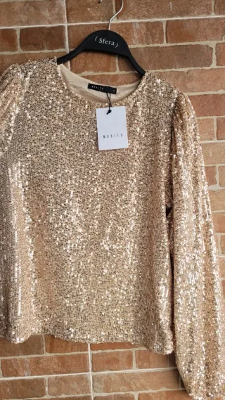 Blusa lentejuelas doradas Mohito Talla S