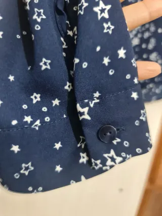 Blusa de manga larga con un bonito estampado de estrellas. - Cierre de botones - Estampado de estrellas blancas sobre fondo azul