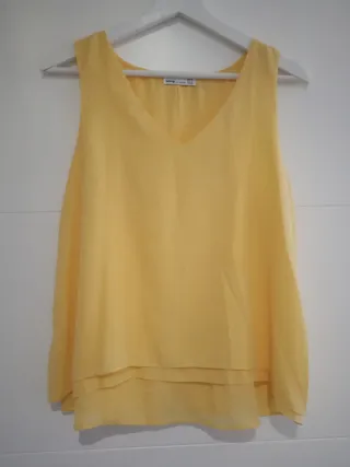 Blusa sin mangas de la marca OEYS. Diseño ligero y con capas. Talla M bastante amplia, 45 cm de sisa. - Cuello en V. - Doble capa en la parte inferior.