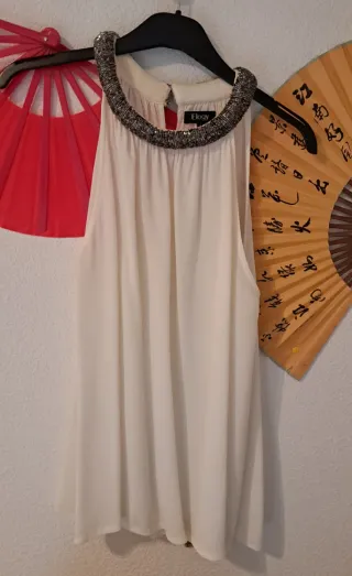 Bonito par de prendas veraniegas de mujer. La blusa es de talla M de Shana, con una apertura en la parte del ombligo como indico en la foto. Vestido camisero que planchado luce genial, con bolsillos laterales que tiene una pequeña tara que indico subrayada en la foto por la zona trasera que con una puntadas, se arregla. Talla única y sin marca. Para combinar, precioso colgante estilo gargantilla que le da ese toque elegante. Poco uso de las prendas.