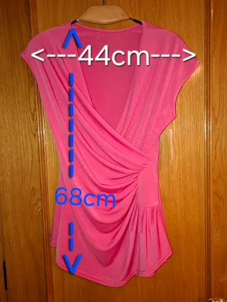 Blusa cruzada de color rosa con un diseño drapeado. - Medida de hombros aprox 44cm - Largo total aprox: 68cm