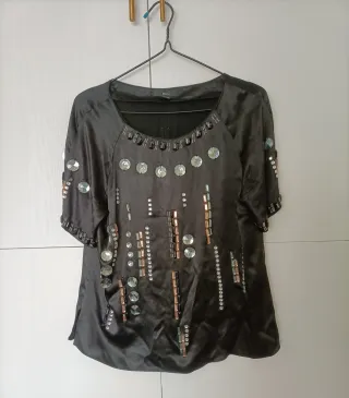 Blusa negra con abalorios talla XL