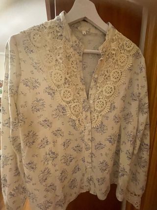 Blusa floral encaje beige y azul talla S