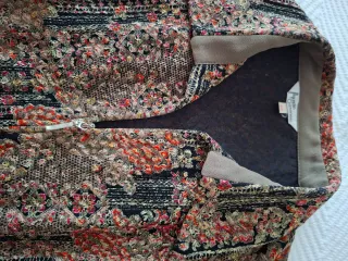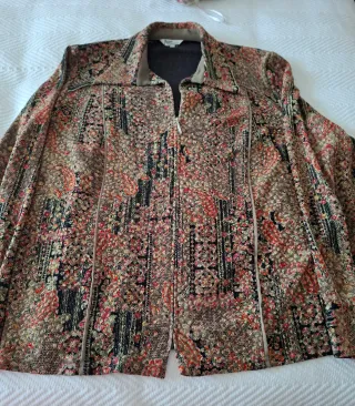 Blusa con un diseño vibrante y detallado. - Estampado floral y geométrico. - Cierre de cremallera. - Cuello con detalle de ante.