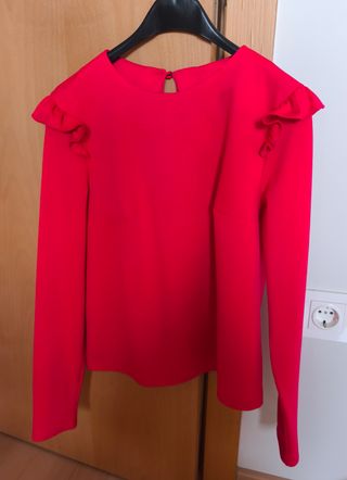 Top color rojo de manga larga con volantitos en los hombros.Talla S. Usado una vez en un evento, como nuevo. Muchas prendas en mi página!!!!