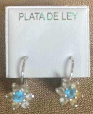 Pendientes Plata Flor Azul y Piedras