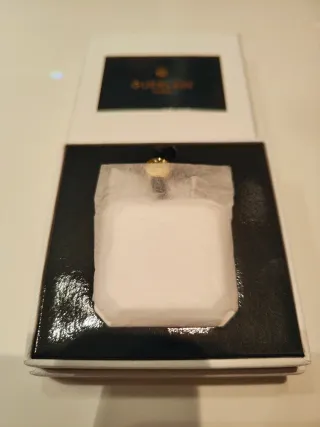 Ambientador para coche de la marca Guerlain. Presentado en su caja original. - Diseño elegante en negro y dorado.