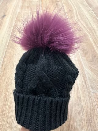 Gorro negro con pompón morado