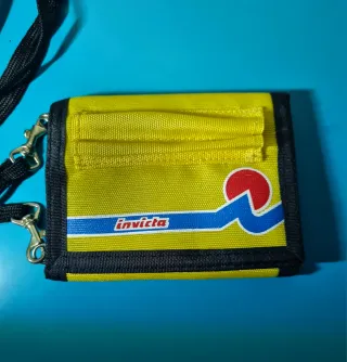 Cartera con diseño llamativo y práctico. - Color amarillo vibrante con detalles en negro. - Logo de Invicta en la parte frontal.