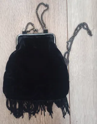 Bolso terciopelo con pedrería y flecos.