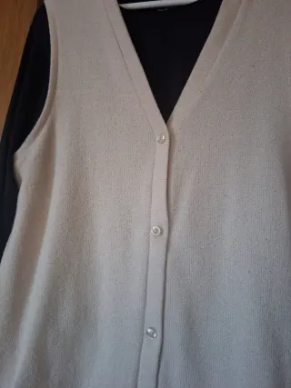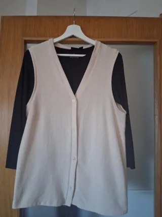 Chaleco de punto de la marca Esmara, de esta temporada - Color beige. - Tejido cómodo y se estira (elastano) - Talla L. - Medidas 52 cm bajo brazos y 65 cm largo.