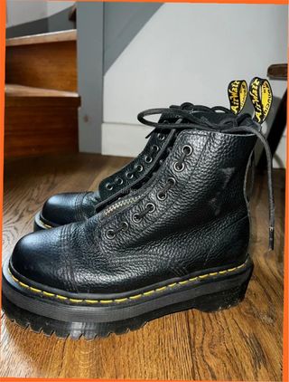 Botas Dr. Martens modelo Pascal con cremallera frontal. - Piel texturizada. - Suela con plataforma. - Costuras amarillas. - Tiradores traseros con logo.