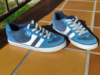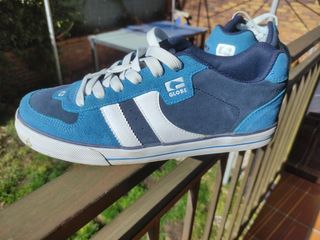 Zapatillas de skate Globe Encore 2 en talla 43. Combinan tonos azules con detalles blancos. - Diseño deportivo. - Cierre con cordones. Usadas exactamente un paseo. Se puede ver la suela IMPOLUTA. Vendo ya que no me gusta como me quedan