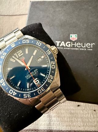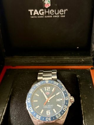 Elegante reloj TAG Heuer Formula 1 con esfera azul. Completo con caja, manual y garantia. Original. - Bisel giratorio azul. - Correa de acero inoxidable. - Cierre desplegable.