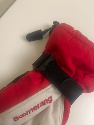 Par de guantes de piel Juba. - Talla S. - Combinación de piel negra y puño beige. - Cierre con mosquetón entre ambos guantes.