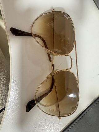 Gafas de sol estilo aviador con montura dorada y lentes marrones. - Diseño clásico aviador. - Montura metálica dorada. - Lentes con tinte marrón. - original