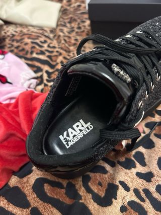 Zapatillas Karl Lagerfeld negras con brillo a estrenar con caja y etiquetas. Las vendo porque me las han regalado por reyes y tambien me han regalado otro modelo muy parecidas y se me ha pasado el plazo para devolverlas . Estan valoradas en 239€ como aparece en una de las imagenes . Envío con su bolsa de la marca .