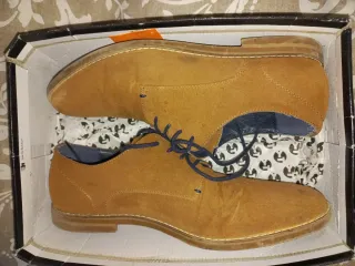 Elegantes zapatos de ante en color marrón, talla 44. Perfectos para un look casual o formal. - Material exterior de ante. - Cordones de color azul marino. - Suela de goma resistente.