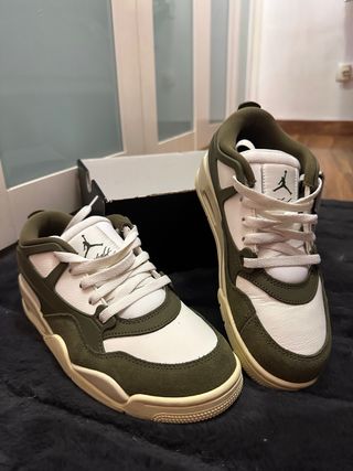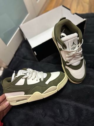 Zapatillas Jordan RM 4 en tonos verde y blanco a estrenar con su caja y bolsa nike , lo unico que le falta es la tapadera por eso su precio pero estan nuevas con todo y valoradas en 149€ aprox . - Diseño moderno y deportivo. - Combinación de materiales. - Logo de Jordan en la lengüeta.
