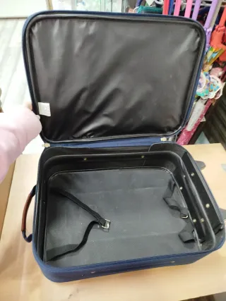 Preciosa maleta trolley para viaje, prácticamente nueva, no ha sido usada nunca, solo de la tienda a casa. Se vende por tener otra igual. La otra se usa y muy bien. Tiene auna parte del central, muy grande como se puede ver en la foto. Dos compartimentos a cada lado con cremallera. EL PESO EN VACIO NO LO SÉ, He puesto ese, aunque creo, que es menor. MEJOR VER. LARGO..0,55. solo maleta,con trollry 0,95 ALTO..0,44 ANCHO..0,40 - Asa de mano y asa extensible. - Ruedas para facilitar el transporte. - Compartimento principal con cremallera. - Bolsillos adicionales con cremallera.