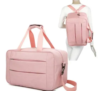Bolsa de viaje de cabina, ideal para aerolíneas como Ryanair. Su diseño es práctico y ligero. - Color rosa. - Compartimentos frontales con cremallera. - Asa de mano y correa ajustable para hombro.