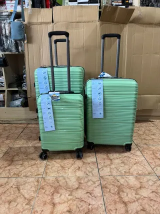 Conjunto de tres maletas de viaje fabricadas en ABS. Características: - Asa telescópica extensible - Dos asas de mano. - 4 ruedas giratorias 360⁰. - Candado de seguridad incorporado. Medidas : - Grande 75 x 48 x 28. - Mediana 65 x 44 x 24. - Cabina 55 x 35 x 21.