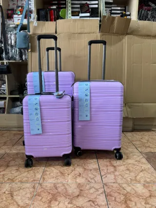 Conjunto de tres maletas de polipropileno, perfectas para tus viajes. - Material resistente a golpes y rayaduras - Dos asas de mano. - Asa telescópica extensible. - Candado de seguridad TSa. - Ruedas dobles giratorias 360⁰. Medidas : - Grande 75 x 48 x 28. - Mediana 65 x 44 x 24 expandible 5cm. - Cabina 55 x 35 x 21