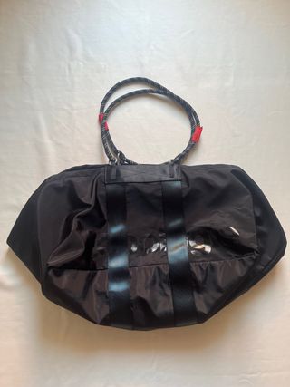 Bolsa Topologie original, ligera y práctica, perfecta para viajes cortos, gimnasio o uso diario. • Color: negro • Diseño amplio tipo duffel • Cierre con cremallera • Interior con varios compartimentos de malla con cremallera, muy funcional • Asas resistentes tipo cuerda + asas de mano • Material ligero pero resistente • Fabricada en Vietnam (ver etiqueta) Estado: En muy buen estado general. Sin roturas ni daños estructurales. Cremalleras funcionan correctamente. Cabe perfectamente sobre una maleta de cabina (ver fotos), ideal como bolsa auxiliar de viaje. Se vende tal cual se muestra en las imágenes.