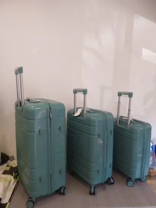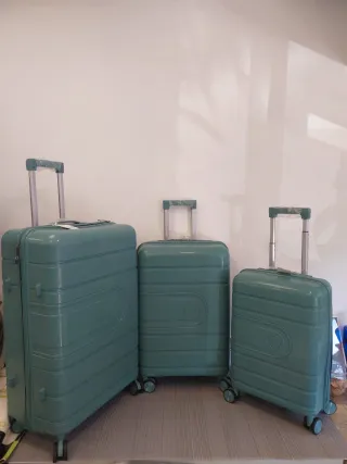 Vendo Conjunto de tres maletas de viaje de diferentes tamaños. Son ligeras y resistentes, ideales para tus próximas vacaciones. Material SILICONA - Maleta grande de 23 a 28 k - Maleta mediana de 20 a 23 k - Maleta pequeña de 10 kilos