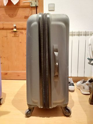 Maleta de viaje gris mediano - Medidas: 67x46x29/32 - cuatro ruedas - Cintas de sujeción interiores. - Expansible - Ligero - Muy limpio y sin olores dentro Posible negociar el precio