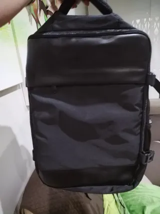 Bolsa de viaje/deporte en muy buen estado, color negro, resistente y amplia. Marca: sin marca. Lo indico porque la app no permite seleccionar ‘sin marca’. Perfecta para gimnasio, escapadas de fin de semana o como equipaje práctico del día a día. ✔ Compartimento lateral con cremallera ✔ Asa larga ajustable + asas de mano ✔ Material resistente y fácil de limpiar ✔ Perfecta como equipaje underseat o de cabina (probada en Ryanair, Vueling y easyJet durante varios viajes) Medidas aproximadas: 50 × 25 × 25 cm Uso normal, sin roturas, cremalleras funcionando perfectamente. Precio: 15€ (honesto y no negociable).