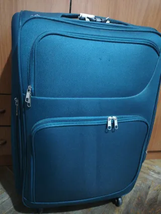 Maleta grande de viaje en excelente estado, casi sin uso. Color verde azulado. Medidas. 75X50 - Diseño espacioso. - Cremalleras resistentes. - Asa retráctil. - Ruedas para fácil transporte.