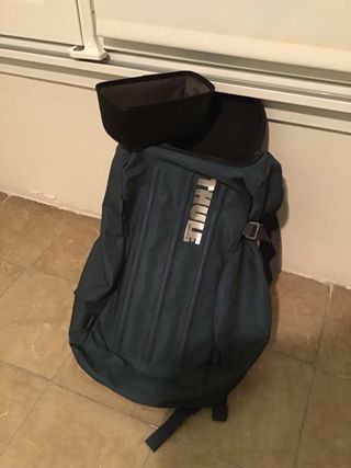 Mochila de viaje de la marca Thule, ideal para tus escapadas. - Diseño moderno y funcional. - Compartimento principal espacioso. - Correas acolchadas para mayor comodidad. - Asas para poder llevarla como maleta. - Compartimentó rígido superior para mobil o cámara fotográfica. - Compartimentos laterales . Etiqueta ligeramente despegada, fácil de pegar. Medidas 55 x 28 x 20 aprox. Entrega en mano en Barcelona.