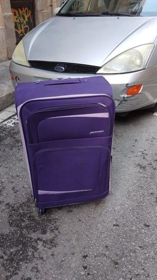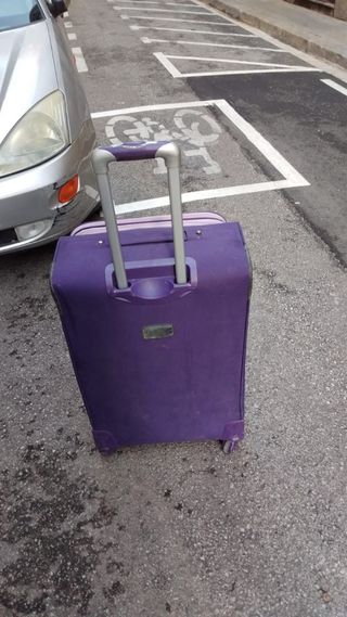 Maleta grande para viajes con medidas de 40x64x25 cm. - Diseño moderno y resistente. - Ruedas para facilitar el transporte. - Asa extensible. de las cuatro ruedas una no gira bien. Se puede usar a dos ruedas.