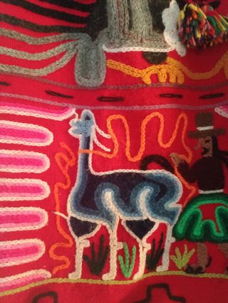 Bolso de lana con un diseño artesanal y llamativo. Perfecto para añadir un toque único a tu estilo. - Tejido de lana. - Adornos bordados con motivos andinos. - Correas de tela tejida. -este bolso lo traje en un viaje a Perú -Esta confeccionado a mano