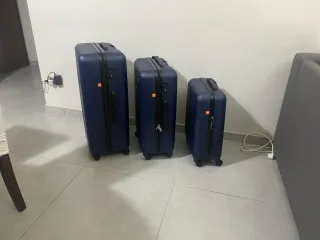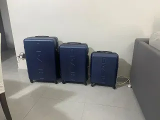 Set de tres maletas de la marca HEAD en color azul. Perfectas para organizar tu equipaje en cualquier viaje. - Maleta grande - Maleta mediana - Maleta de cabina