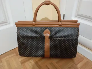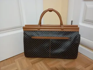 Elegante bolso de viaje con un diseño clásico. - Combinación de colores marrón y negro. - Estampado monograma. - Asa superior. - Cierre con solapa y correa. Medidas 48x 32 cm. Ideal para fin de semana. Recogida en mano. Perfecta
