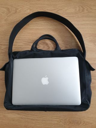 Bolso negro grande, para llevar portátil o libros, también vale como bolsa de equipaje de mano. Medidas 40x30x13cm. Con varios bolsillos interiores y exteriores cerrados con cremallera y velcro. De nylon, ligera. Con asas de mano y para hombro. De Francesco Biasia. Más cosas en mi perfil