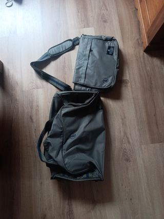 Vendo un bolso bandolera y una maleta de viaje. Ambos están en perfecto estado. - Son de color verde oliva. - La maleta es tipo deportivo. - El bolso es perfecto para llevar al hombro.
