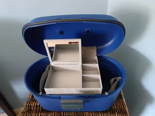 NECESER DE VIAJE vintage SIN USAR, de tela de nylon azul marino, SIN USAR, tiene varios compartimentos, espejo, bolsillos, etc. Medidas: 28 x 27 y de ancho 14 cm. Ideal también para llevar todo un equipo de fotografía, para herramientas, botiquín... etc. Pago en efectivo. No hago envíos.