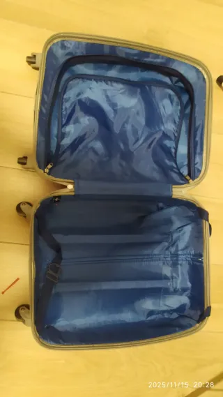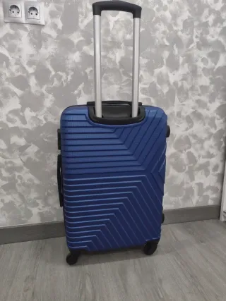 Maleta de viaje en perfecto estado, utilizada solo una vez. Es muy espaciosa y tiene un diseño atractivo. - Color azul. - Diseño moderno con líneas. - Ruedas para fácil transporte.