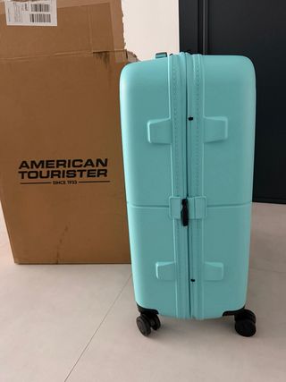 Maleta de viaje de la marca American Tourister en color turquesa. - Diseño moderno y funcional. - Ruedas para facilitar el transporte. - Asa extensible. - Maleta expansible - 100% Polypropyleno - Tamaño mediano (bodega) - Embalaje original